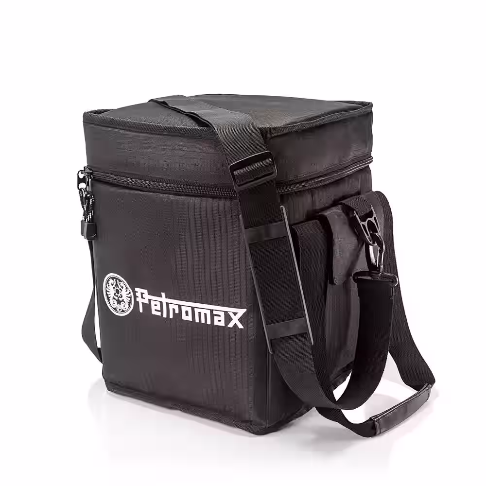 Die Tasche bietet mit verstärkten Wänden und Boden eine sichere Lösung für den Transport des Raketenofens rf33. Zusätzliche Stabilität bringt das robust gepolsterte Ripstop-Gewebe mit aufgesticktem Petromax-Logo. Die beiden Henkel und der abnehmbare Schultergurt sind gesondert verstärkt und gewähren bequemen Tragekomfort. Zubehör kann in Netztaschen im Deckelinneren oder den Außentaschen mit Klettverschluss untergebracht werden.
