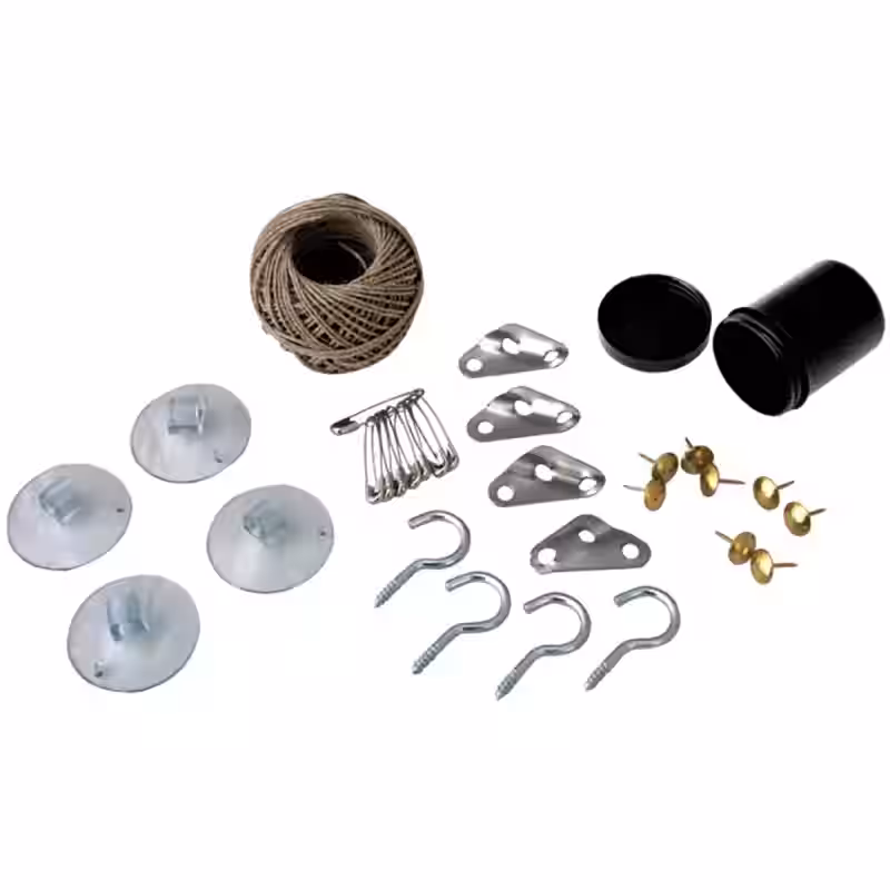 Hier sind alle nötigen Teile zur Netzfixierung und zusätzlicher Dose für die spitzen Kleinteile zusammen erhältlich.